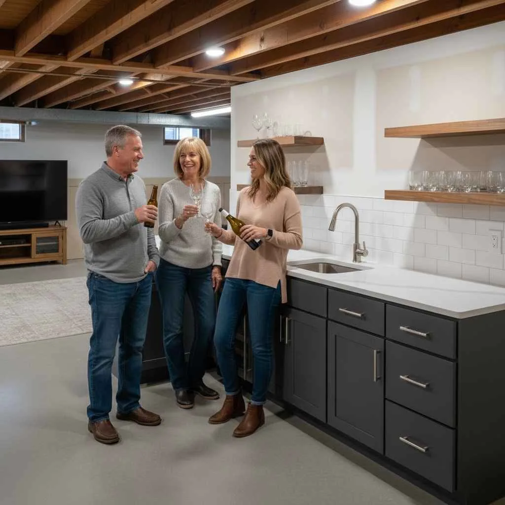 Wet bars often include lighting and appliances. Coordinating plumbing with electrical work ensures safe spacing and functionality.